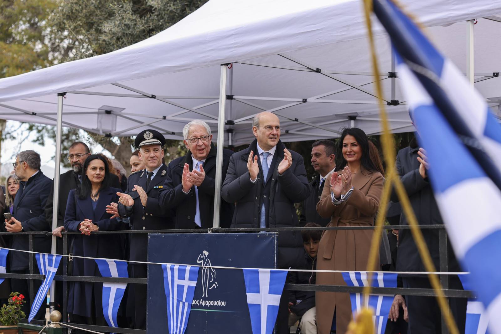 Ο Δήμαρχος Αμαρουσίου στις εορταστικές εκδηλώσεις συνοδευόταν από τη σύζυγό του Ελένη Τριανταφύλλη – Αμπατζόγλου.