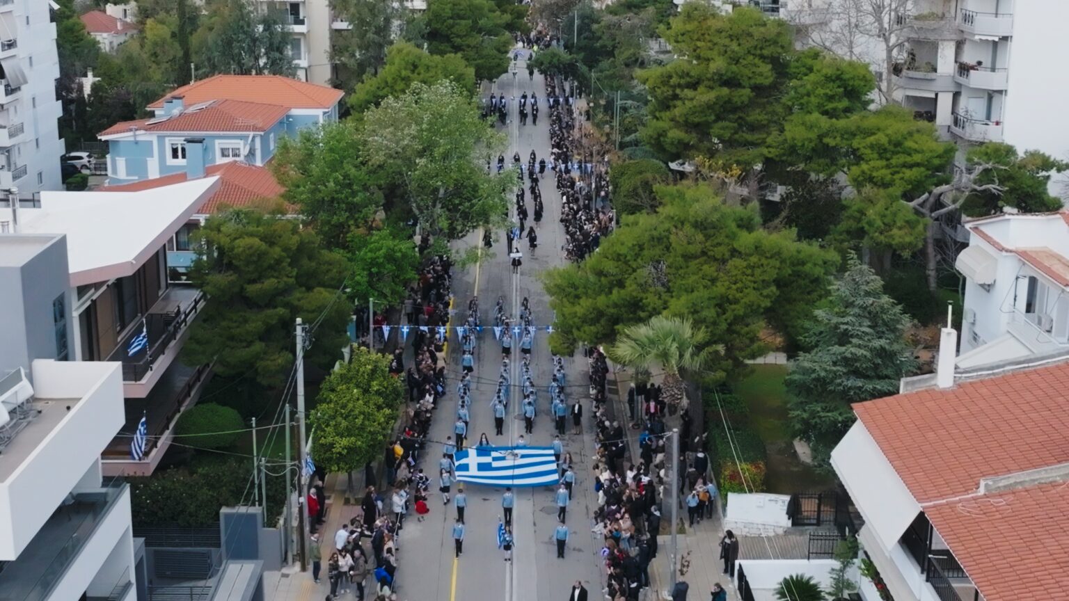 Οι εορταστικές εκδηλώσεις κορυφώθηκαν με την παρέλαση των μαθητών και των συλλόγων της πόλης μας στην οδό Αναλήψεως, υπό τους ήχους της Φιλαρμονικής του Δήμου Βριλησσίων.