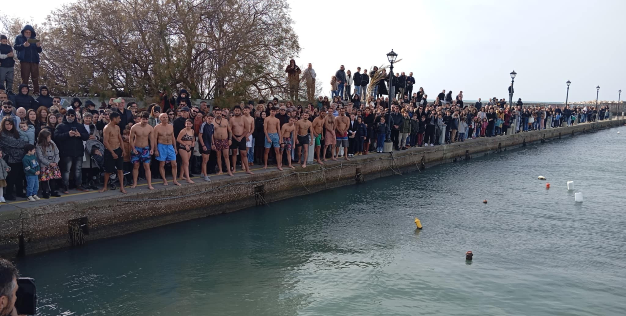 Ιδιαίτερα εντυπωσιακή ήταν και φέτος η συμμετοχή των κολυμβητών, συνολικά δεκατέσσερα άτομα, ανάμεσά τους και παιδιά μικρής ηλικίας, όπου βούτηξαν στα κρύα νερά για την κατάδυση του Τιμίου Σταυρού.