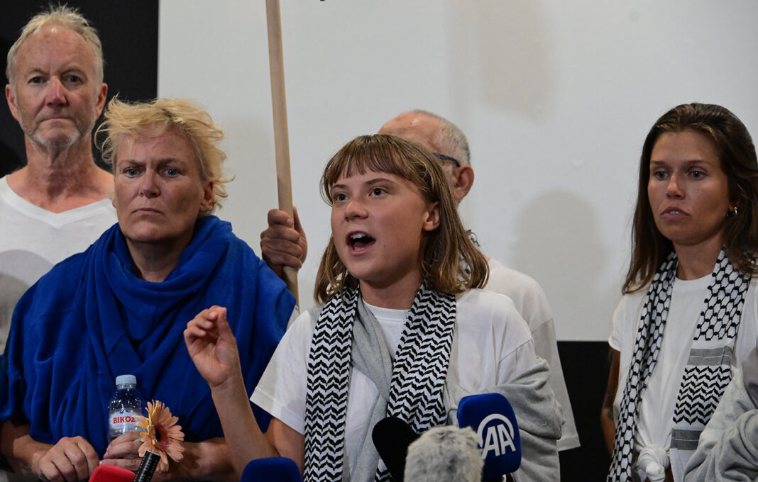 Με ιδιαίτερα αιχμηρή τοποθέτηση κατά του Ισραήλ εμφανίστηκε η Γκρέτα Τούνμπεργκ, λίγη ώρα μετά την άφιξή της στο αεροδρόμιο «Ελευθέριος Βενιζέλος».