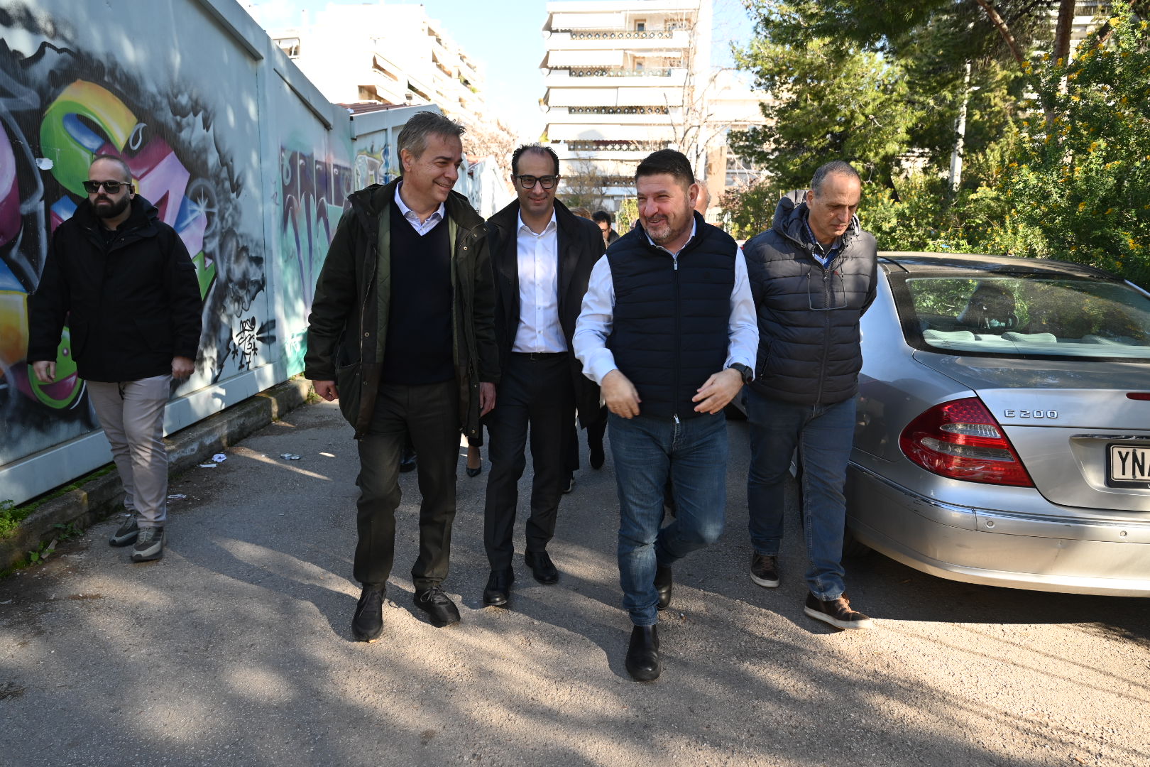 Τον Περιφερειάρχη Αττικής συνόδευαν στην αυτοψία η Ειδική Γραμματέας Έλενα Ράπτη και ο Προϊστάμενος της Ειδικής Υπηρεσίας Διαχείρισης (ΕΥΔΠ) του Περιφερειακού Προγράμματος «Αττική» 2021–2027, Δημήτρης Δρόσης. Παρόντες ήταν επίσης ο Πρόεδρος των Κτιριακών Υποδομών Α.Ε. (ΚΤ.ΥΠ. Α.Ε.) Τιμολέων Κατσίπος, ο Διευθύνων Σύμβουλος του ίδιου φορέα Αθανάσιος Γιάνναρης, καθώς και εκπρόσωπος του αναδόχου του έργου.
