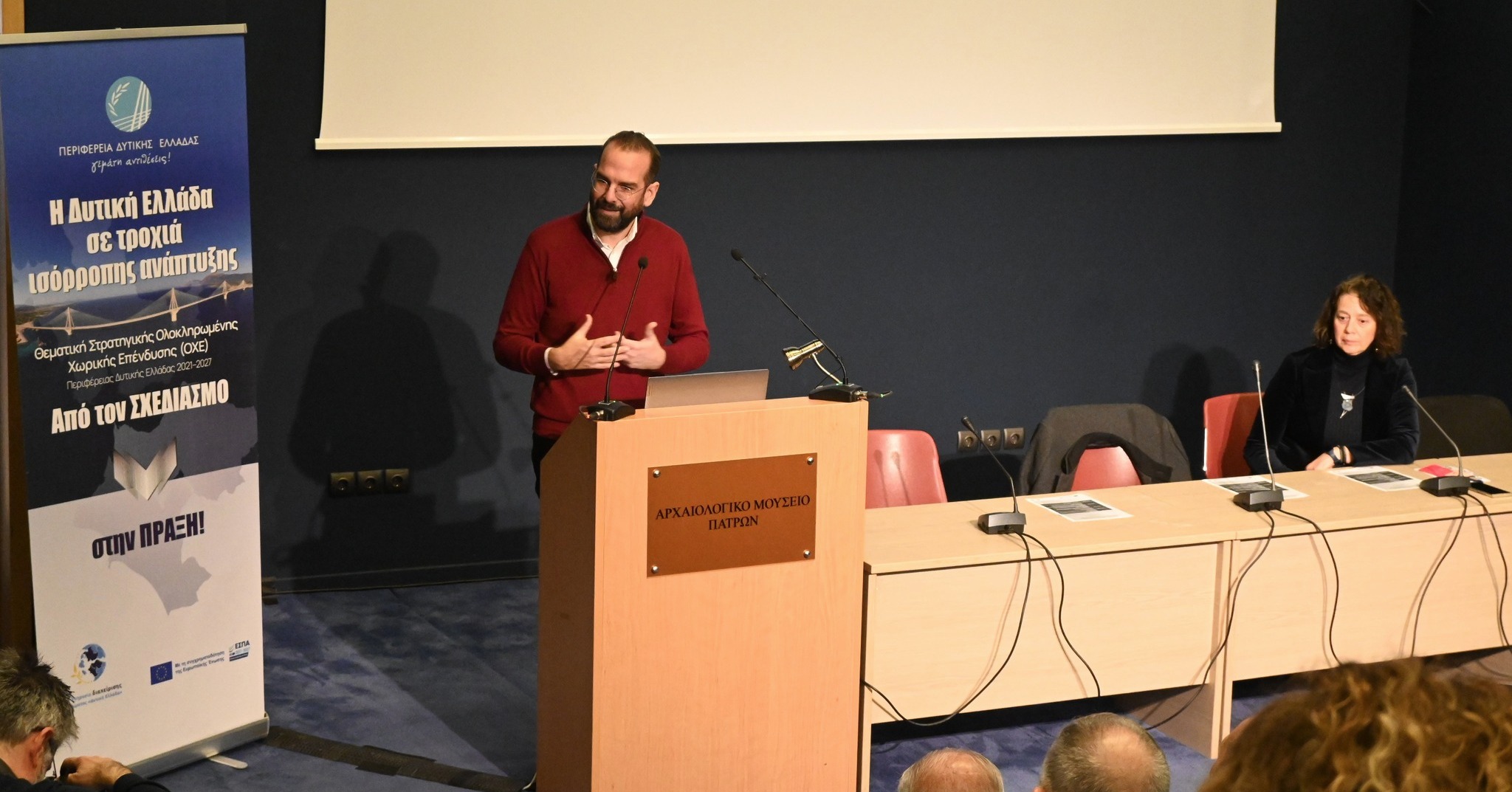 Για πρώτη φορά, η Περιφέρεια Δυτικής Ελλάδας δημιουργεί μια Χωρική Επένδυση που αφορά όλη τη Δυτική Ελλάδα, ανέφερε ο Περιφερειάρχης Δυτικής Ελλάδας Νεκτάριος Φαρμάκης στην επίσημη παρουσίαση της ΟΧΕ Δυτικής Ελλάδας που πραγματοποιήθηκε στην αίθουσα του Αρχαιολογικού Μουσείου Πατρών.