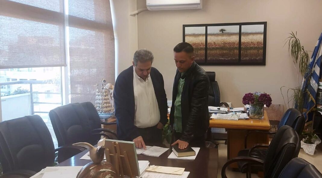 Ορκίστηκε στο γραφείο του Δημάρχου Φαρσάλων κ. Μάκη Εσκίογλου και ανέλαβε υπηρεσία, νέος υπάλληλος, Δ.Ε. Μηχανημάτων έργου, ο κ. Ευάγγελος Γιασλάς.