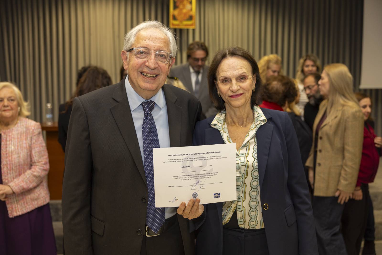 Στην υπογραφή της Χάρτας παρέστησαν ακόμη οι: Χριστίνα Κεφαλογιάννη Αν. Περιφερειάρχης Αττικής και Πρόεδρος της Περιφερειακής Επιτροπής Ισότητας (Π.ΕΠ.ΙΣ.), Μαργαρίτα Βάρσου Αντιπεριφερειάρχης Β. Τομέα Αθηνών, Δρ. Ελένη Ζενάκου, Πρόεδρος του Κέντρου Ερευνών για θέματα Ισότητας (Κ.Ε.Θ.Ι.), Φωτεινή Βρύνα Εκπρόσωπος Τύπου του ΕΦΚΑ, πρ. επικεφαλής του Τομέα Ισότητας των Φύλων της Ένωσης Περιφερειών Ελλάδας (ΕΝ.Π.Ε.) και Μαρία Καρπαθάκη Παγκόσμια πρωταθλήτρια TAEKWONDO, Ομοσπονδιακή προπονήτρια της Εθνικής Ομάδας TAEKWONDO ΚΩΦΩΝ – ΒΑΡΗΚΟΩΝ και αξιωματικός της Ελληνικής Αστυνομίας. Οι ανωτέρω απευθύνοντας χαιρετισμό αναφέρθηκαν με τα πιο θερμά λόγια στην υψηλή δραστηριοποίηση του Δήμου Αμαρουσίου στο πεδίο της Ισότητας των Φύλων, ενώ δεν παρέλειψαν να μιλήσουν για τη σημαντικότητα της Χάρτας, ενημερώνοντας παράλληλα για τη σχετική εφαρμογή στους Φορείς που εκπροσωπούν.