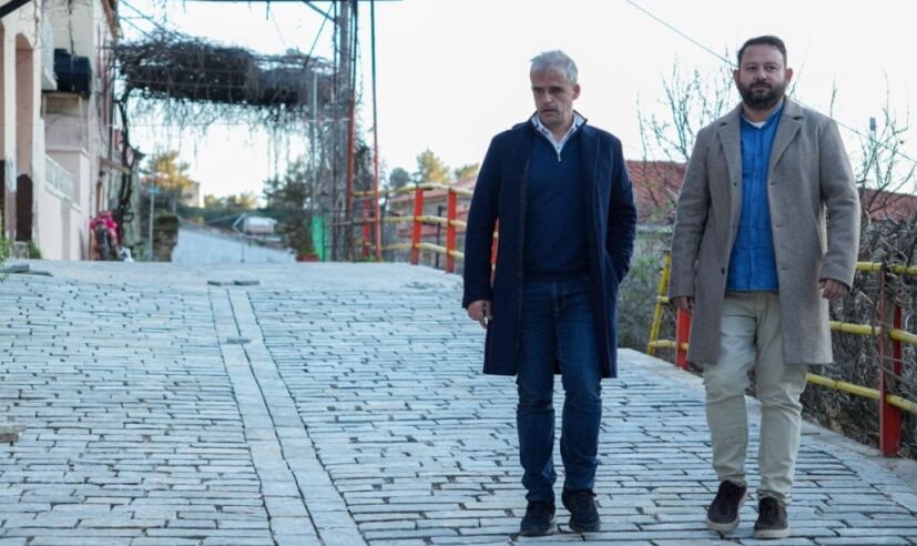 Κατά την επίσκεψή του στον οικισμό, βρέθηκε στο σημείο όπου πραγματοποιούνται εργασίες πλακόστρωσης.
