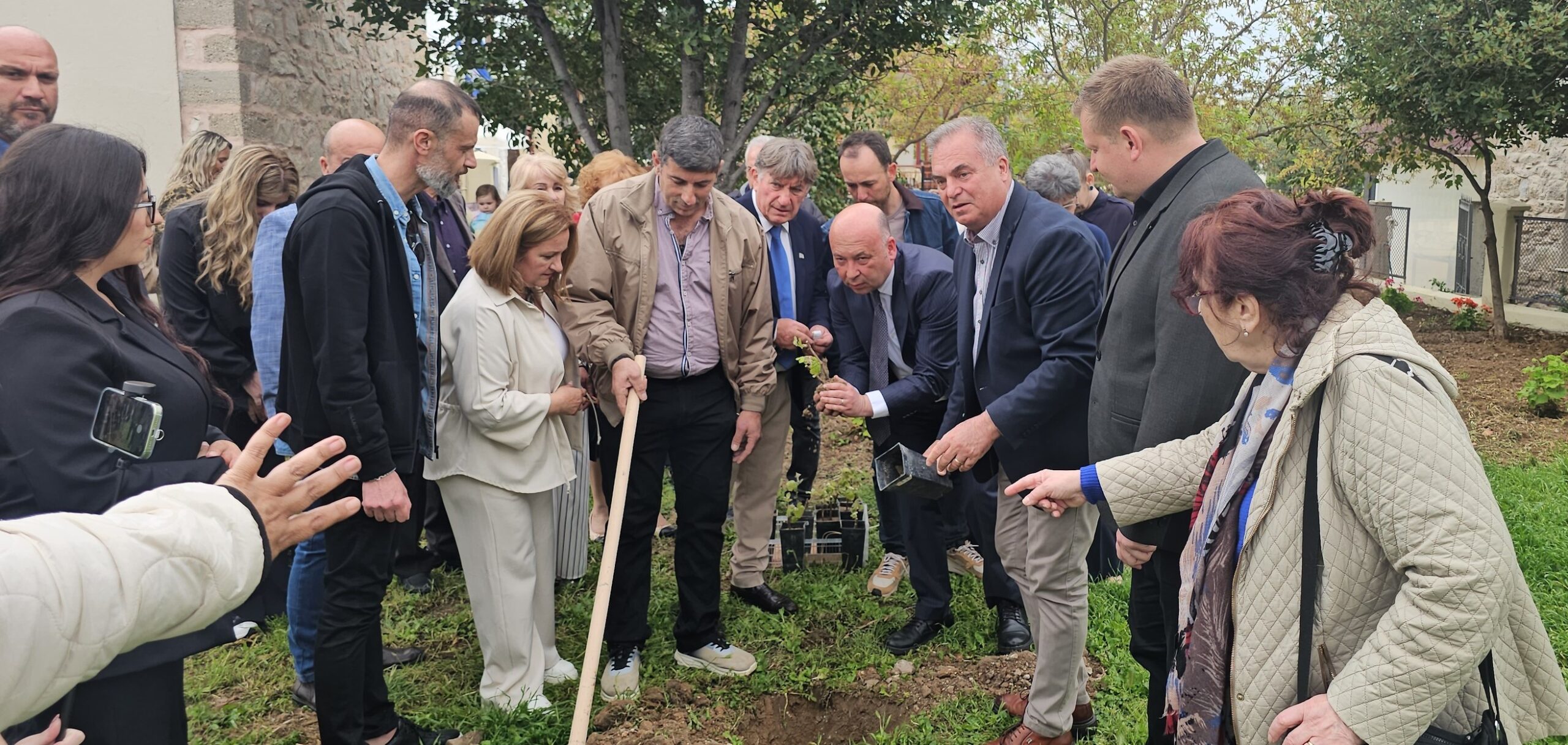 Ως συμβολική κίνηση, φυτεύτηκαν στον αύλειο χώρο αμπέλια της ποικιλίας τσαούσι, που ευδοκιμεί στο νησί.