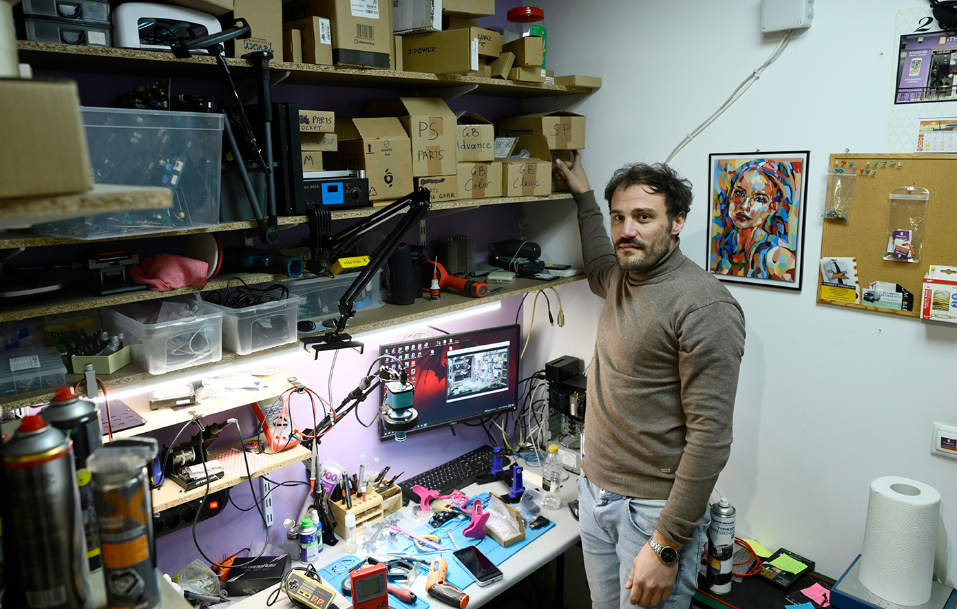 «Ανάλογα το πρόβλημα της κάθε συσκευής, για παράδειγμα το Nintendo Game Boy DMG πολλές φορές έχει κάθετες γραμμές η οθόνη ή δεν παίζει ο ήχος, εμείς έχουμε τη γνώση από την πείρα μας και τα επισκευάζουμε. Άλλος πελάτης θέλει να το ανακατασκευάσουμε με καινούργια IPS οθόνη φωτιζόμενη (γιατί ξέρετε τα Game Boy δεν είχαν φωτισμό για να κρατάει η μπαταρία). Μπορούμε να αλλάξουμε το κέλυφός τους με καινούργιο ή να βάλουμε διάφανο κέλυφος με διαφορετικά χρώματα κουμπιών και σιλικόνης καθώς και να εγκαταστήσουμε μπαταρία λιθίου νέας τεχνολογίας με φόρτιση USB-C όπως φορτίζουν τα smartphones».