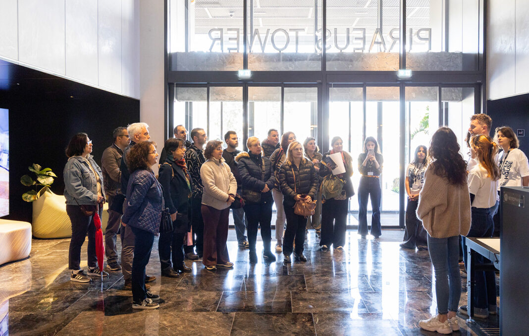 Οι ξεναγήσεις πραγματοποιήθηκαν από τους εθελοντές του Open House Athens, προσφέροντας μια ολοκληρωμένη εμπειρία περιήγησης στο κτήριο. Κατά τη διάρκειά τους, οι επισκέπτες γνώρισαν την ιστορία του Πύργου, τις αρχιτεκτονικές καινοτομίες και τις πρωτοποριακές βιοκλιματικές λύσεις που τον καθιστούν έναν σύγχρονο, βιώσιμο ουρανοξύστη διεθνών προδιαγραφών.