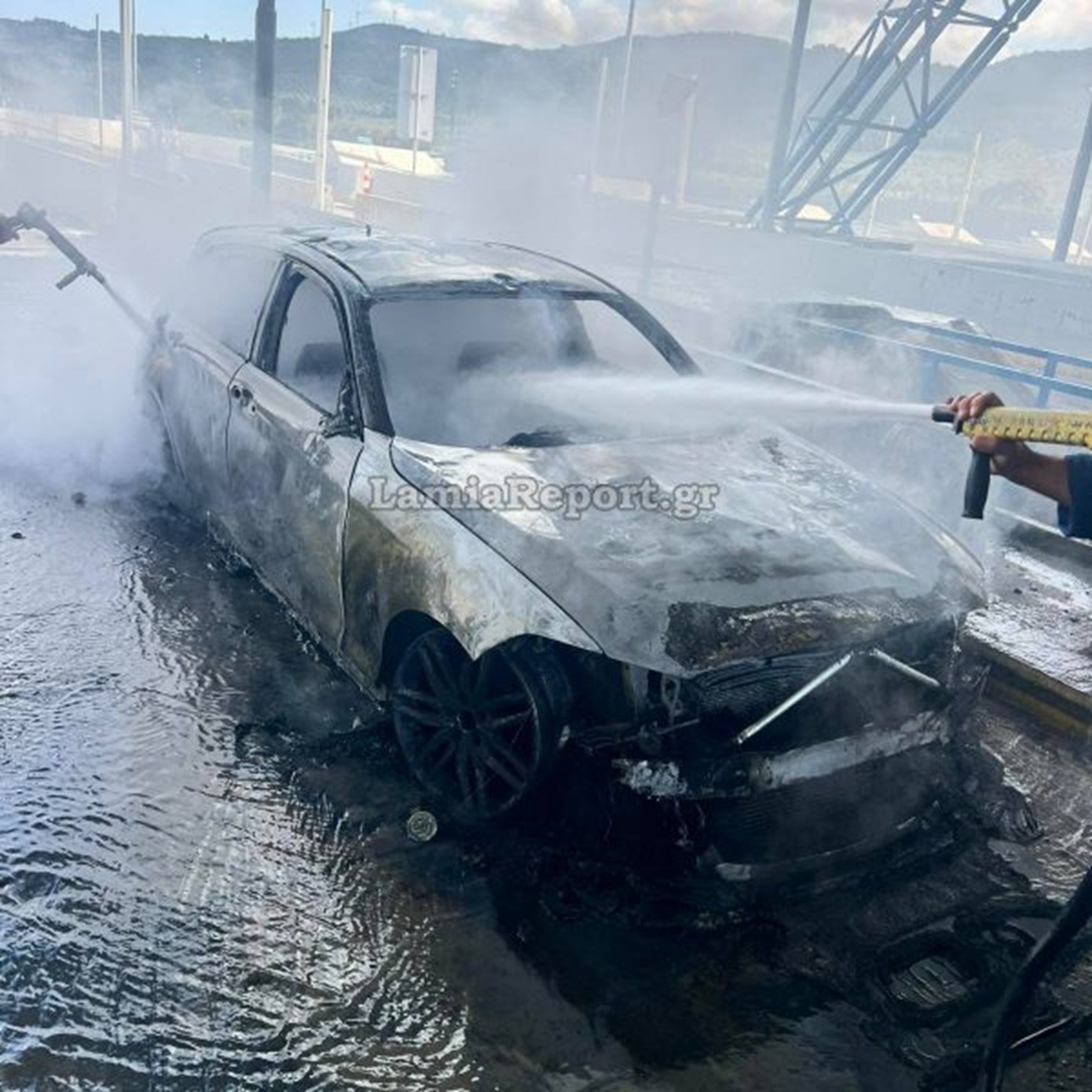 Όχημα τυλίχθηκε στις φλόγες στα διόδια της Τραγάνας – Δείτε εικόνες