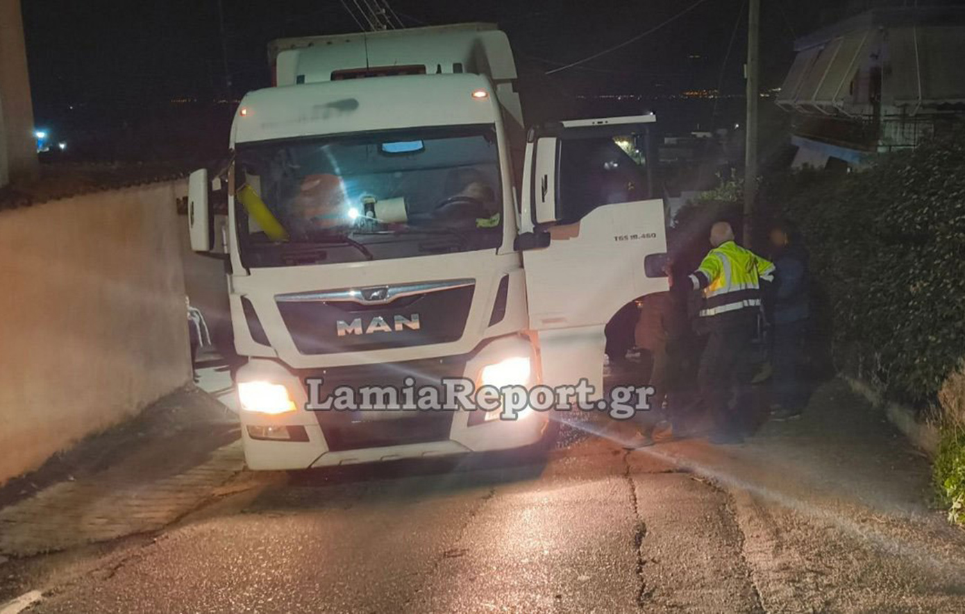 Αναστάτωση προκλήθηκε στην Κοινότητα Αγίας Παρασκευής στη Λαμία, όταν ένας οδηγός νταλίκας μπερδεύτηκε και κόλλησε σε στενό.