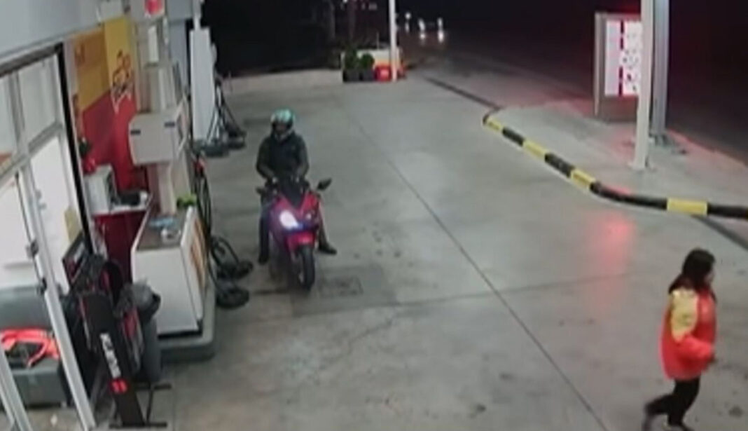 Όπως φαίνεται στο βίντεο από τις κάμερες ασφαλείας του βενζινάδικου, το λευκό Ι.Χ. είχε σταματήσει κανονικά στην αντλία και γέμιζε καύσιμα.