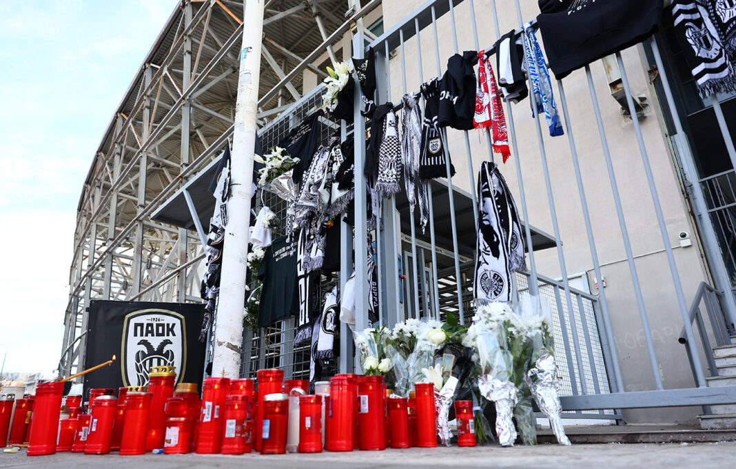 Από το πρωί, εκατοντάδες πολίτες σπεύδουν σιωπηλοί, συγκινημένοι στη Θύρα 4 στην Τούμπα για να αφήσουν ένα λουλούδι στη μνήμη των θυμάτων.