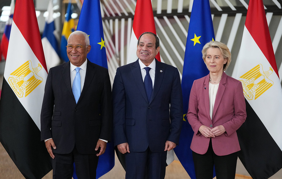 Οι ηγέτες Αντόνιο Κόστα, Ούρσουλα φον ντερ Λάιεν και Άμπντελ Φάταχ ελ Σίσι υπέγραψαν μια Κοινή Διακήρυξη 23 σημείων που ενισχύει τη Στρατηγική και Ολοκληρωμένη Εταιρική Σχέση, εστιάζοντας στην πράσινη ανάπτυξη και την ενεργειακή συνδεσιμότητα.
