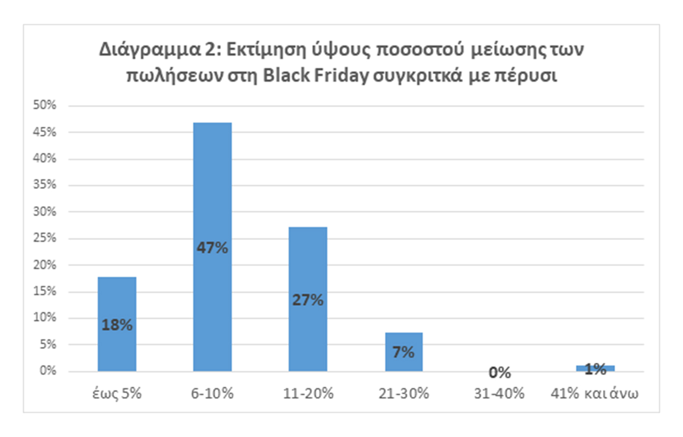 Αξιοσημείωτο είναι ότι σχεδόν τα δύο τρίτα των επιχειρήσεων αμφισβητούν πλέον την αποτελεσματικότητα του θεσμού, εκτιμώντας ότι η Black Friday ευνοεί κυρίως τις μεγάλες αλυσίδες και τις διεθνείς πλατφόρμες, αφήνοντας τις μικρότερες επιχειρήσεις με περιορισμένο περιθώριο κέρδους. Οι περισσότερες επέλεξαν ως κύριο μέσο προώθησης τις βιτρίνες και σε δεύτερο βαθμό τα social media.