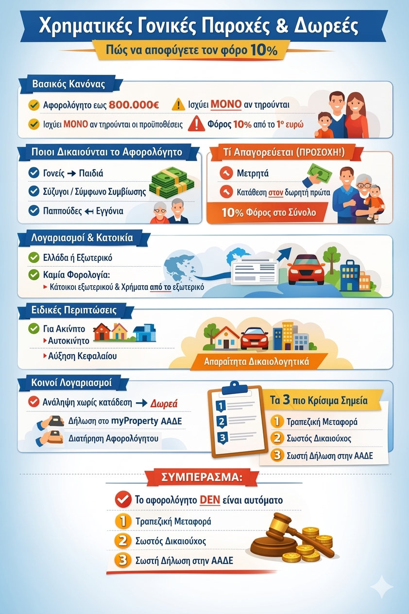 Οικονομικές γονικές παροχές και δωρεές: Πώς να γλιτώσετε τον φόρο 10% – Τα 11 βασικά σημεία