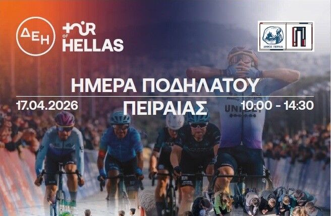 Η Διεύθυνση Αθλητισμού του Δήμου Πειραιά σε συνεργασία με τη Cycling Greece, διοργανώνει την εκδήλωση «Ημέρα Ποδηλάτου», στο πλαίσιο της μεγάλης αθλητικής διοργάνωσης «ΔΕΗ Tour of Hellas 2026».