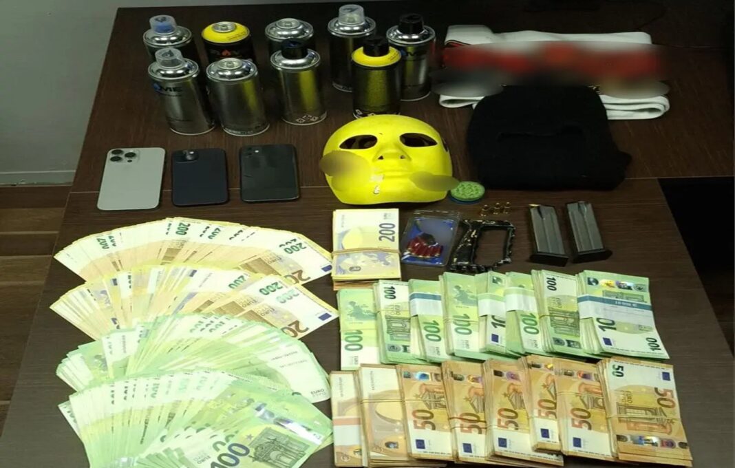 Επιπλέον, στην οικία ενός εξ αυτών, βρέθηκαν και κατασχέθηκαν δύο γεμιστήρες με συνολικά τριάντα έξι φυσίγγια, επτά φυσίγγια αδράνειας, δύο αβολίδωτα φυσίγγια, καθώς και το χρηματικό ποσό των τριακοσίων δύο χιλιάδων εκατόν ενενήντα ευρώ, τα οποία διαπιστώθηκε ότι ανήκουν σε συγγενικό του πρόσωπο, το οποίο επίσης συνελήφθη.