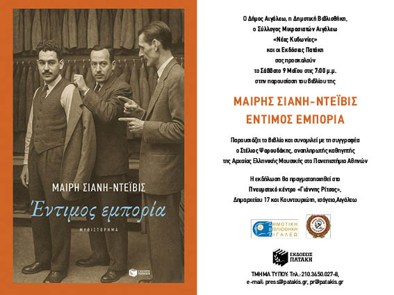Ο Δήμος Αιγάλεω, σε συνεργασία με τη Δημοτική Βιβλιοθήκη Αιγάλεω, τον Σύλλογο Μικρασιατών Αιγάλεω «Νέες Κυδωνίες» και τις Εκδόσεις Πατάκη, σας προσκαλούν στην παρουσίαση του βιβλίου της Μαίρης Σιάνη – Ντεϊβις με τίτλο «Έντιμος Εμπορία».