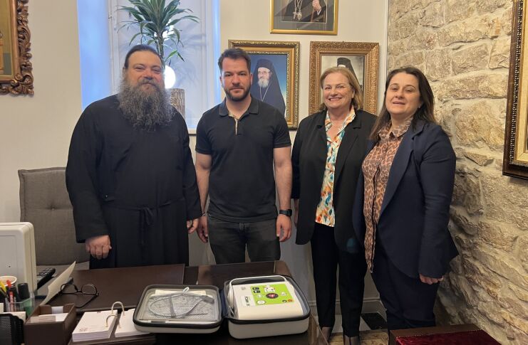 Ο απινιδωτής έχει τοποθετηθεί σε εύκολα προσβάσιμο και ασφαλές σημείο εντός του Ιερού Ναού, ώστε να είναι άμεσα διαθέσιμος σε περίπτωση ανάγκης καθ’ όλη τη διάρκεια των εκδηλώσεων.