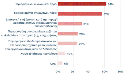 € σε κατάρτιση, οι περιορισμένοι πόροι και η διοικητική επιβάρυνση καθιστούν την επανεκπαίδευση δύσκολη, με μόνο το 10% των συμμετεχόντων να μην αναφέρει προκλήσεις.