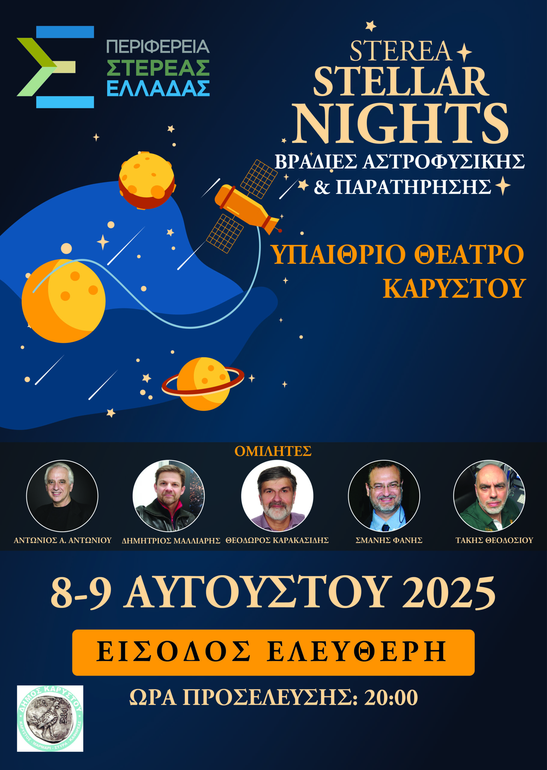 «Ακόμα 2 μοναδικές βραδιές αστροφυσικής και παρατήρησης νυχτερινού ουρανού, θα πραγματοποιηθούν στην Κάρυστο της Π.Ε Ευβοίας. Είμαστε χαρούμενοι που μαζί με εξαιρετικούς ομιλητές και μοναδικές δράσεις, φέρνουμε τις θετικές επιστήμες και συγκεκριμένα την αστροφυσική απλουστευμένα και εκλαϊκευμένα πιο κοντά στους Στερεοελλαδίτες κάθε ηλικίας.»