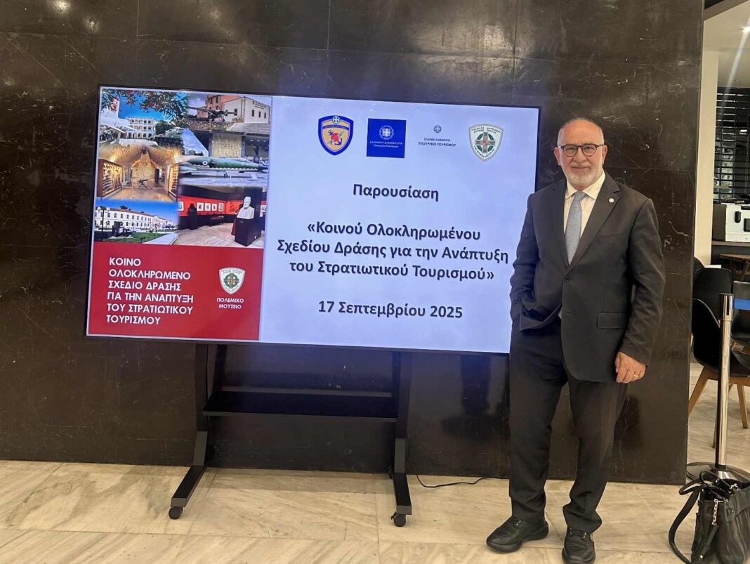Σε εκδήλωση στο Πολεμικό Μουσείο, όπου παρουσιάστηκε το «Κοινό Ολοκληρωμένο Σχέδιο Δράσης για την Ανάπτυξη του Στρατιωτικού Τουρισμού», επισημάνθηκε ο στρατηγικός ρόλος του στρατιωτικού τουρισμού στην ανάδειξη της πολιτιστικής κληρονομιάς και στη δημιουργία νέων τουριστικών προϊόντων.
