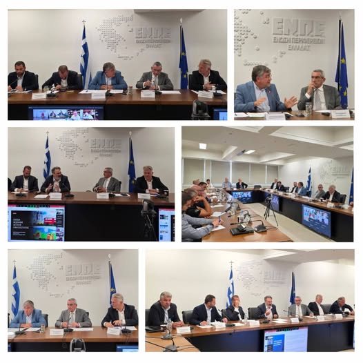 Η Ένωση Περιφερειών Ελλάδας συνεδρίασε με τους Γενικούς Γραμματείς του Υπουργείου Περιβάλλοντος και Ενέργειας, κ. Μανώλη Γραφάκο και κ. Ευθύμιο Μπακογιάννη, εστιάζοντας στα Σχέδια Βιώσιμης Αστικής Κινητικότητας (ΣΒΑΚ) και τη Στρατηγική Μελέτη Περιβαλλοντικών Επιπτώσεων (Σ.Μ.Π.Ε.) για τις Μονάδες Ενεργειακής Αξιοποίησης Απορριμμάτων.