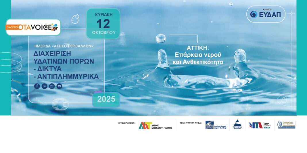 Η δεύτερη ημερίδα του ενημερωτικού κύκλου “ΑΣΤΙΚΟ ΠΕΡΙΒΑΛΛΟΝ” που διοργανώνεται στα πλαίσια του ΔΙΑΛΟΓΟΙ – OTAVOICE.GR πραγματοποιείται με θέμα: “ΔΙΑΧΕΙΡΙΣΗ ΥΔΑΤΙΝΩΝ ΠΟΡΩΝ – ΔΙΚΤΥΑ – ΑΝΤΙΠΛΗΜΜΥΡΙΚΑ” στο Πολιτιστικό Κέντρο Μοσχάτου.