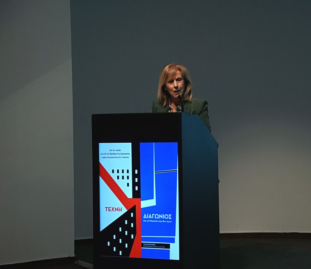 Η Αθηνά Αηδονά στην έναρξη της έκθεσης «Τέχνη-Διαγώνιος και το Μουσείο που δεν υλοποιήθηκε»