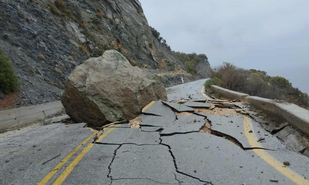 Στη Λέσβο, ο δρόμος της Μελίντας έχει κλείσει λόγω πτώσης ενός μεγάλου βράχου, που προκάλεσε σοβαρές ζημιές στο οδόστρωμα.
