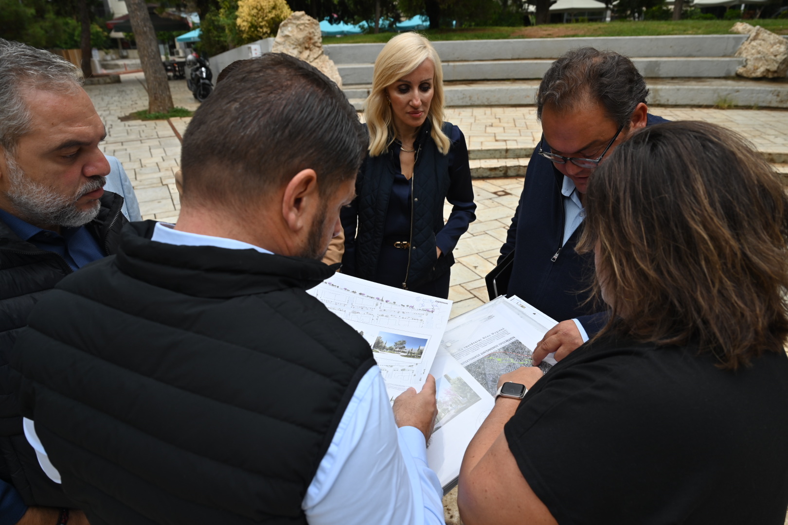 Αμέσως μετά, ο Περιφερειάρχης συνοδευόμενος από τον Δήμαρχο επισκέφθηκε τους χώρους που αναμένεται να διεξαχθούν οι εργασίες για την κατασκευή αρδευτικού συστήματος και τις αστικές αναπλάσεις στις πλατείες του Νέου Ψυχικού.