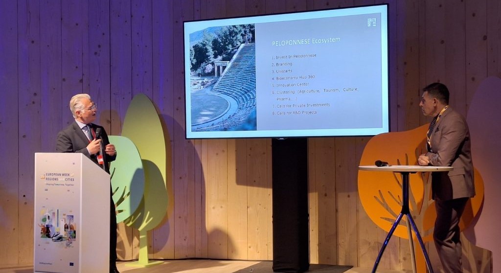 Με μια ομιλία ουσίας και ευρωπαϊκής προοπτικής, ο Περιφερειάρχης Πελοποννήσου Δημήτρης Πτωχός παρουσίασε στις Βρυξέλλες, στο πλαίσιο της Ευρωπαϊκής Εβδομάδας Περιφερειών και Πόλεων 2025, το εμβληματικό έργο «Ανάπτυξη Δομών Υποστήριξης της Καινοτομίας και της Επιχειρηματικότητας στην Περιφέρεια Πελοποννήσου».