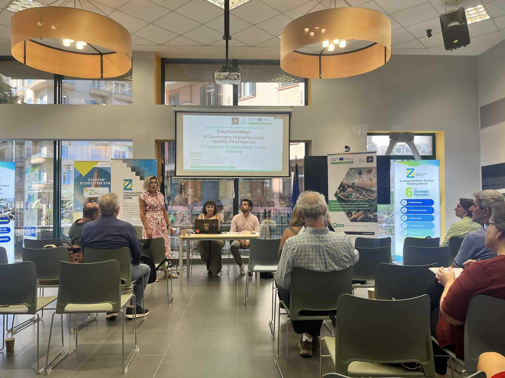 Στη Θεσσαλονίκη, στις εγκαταστάσεις της Αλεξάνδρειας Ζώνης Καινοτομίας (Thessinnozone), πραγματοποιήθηκε η τρίτη συνάντηση της Περιφερειακής Ομάδας Υποστήριξης/Regional Stakeholders’ Group (RSG) του έργου DeepTechValleys.