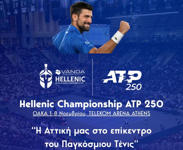 Η Περιφέρεια Αττικής αποτελεί βασικό χορηγό της διοργάνωσης “Vanda Pharmaceuticals Hellenic Championship ATP 250” που θα διεξαχθεί από την 1η έως τις 8 Νοεμβρίου στην Αθήνα.