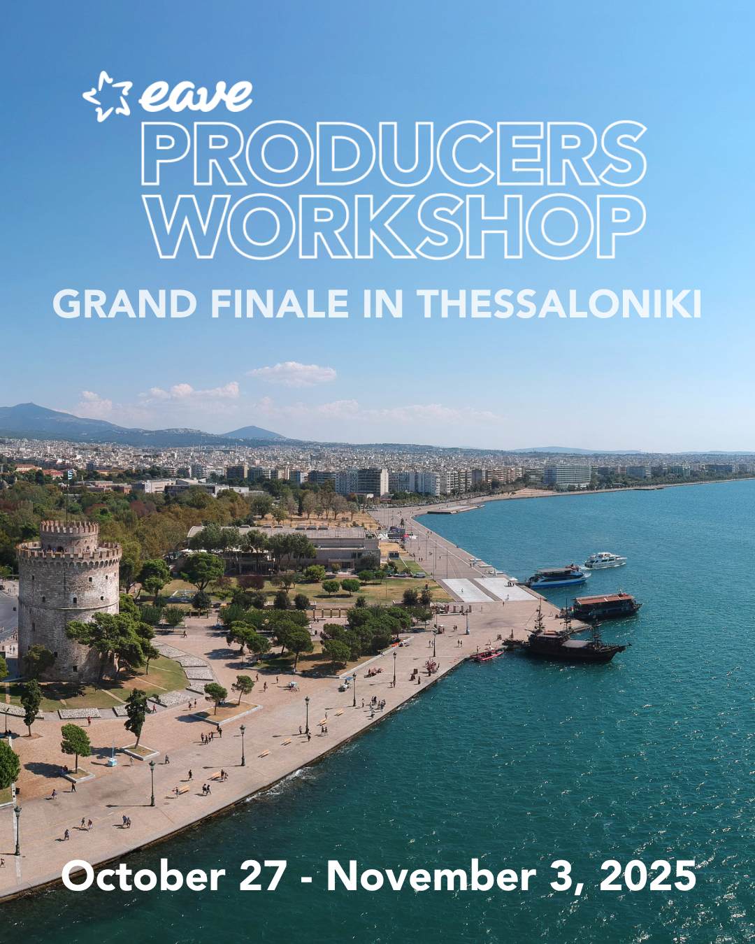 Η τρίτη και τελευταία εβδομάδα του EAVE 2025 Producers Workshop στη Θεσσαλονίκη διοργανώνεται από το ευρωπαϊκό δίκτυο EAVE (European Audiovisual Entrepreneurs) και τον ΣΑΠΟΕ (Σύνδεσμο Ανεξάρτητων Παραγωγών Οπτικοακουστικών Έργων), σε συνεργασία με το Φεστιβάλ Κινηματογράφου Θεσσαλονίκης και την Αγορά του Φεστιβάλ.
