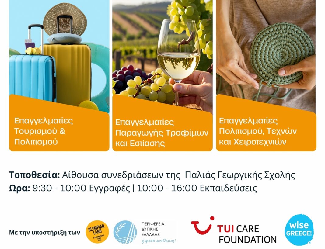 Η Περιφέρεια Δυτικής Ελλάδας σε συνεργασία με την Wise Greece και την υποστήριξη του TUI Care Foundation διοργανώνει Ημερίδα Επιχειρηματικής και Επαγγελματικής Ενδυνάμωσης για επαγγελματίες ή επιχειρηματίες που επιθυμούν να ενισχύσουν τις γνώσεις και τις δεξιότητές τους.