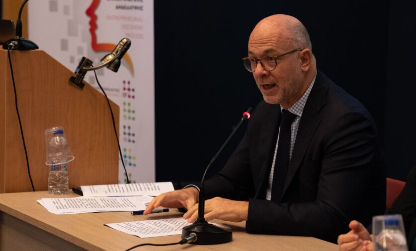 Η ημερίδα έκλεισε με την διαδραστική ενότητα «Καινοτομία στην Πράξη» που άνοιξε ο Εντεταλμένος Σύμβουλος RIS3 της ΠΔΕ, Λυκούργος Σταυρουλόπουλος.