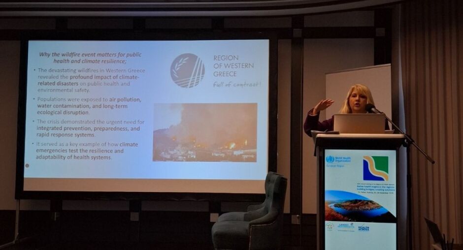 «Η εμπειρία των μεγα-πυρκαγιών του Αυγούστου 2025 επιβεβαίωσε ότι η κλιματική αλλαγή αναδιαμορφώνει το τοπίο των κινδύνων για τη Δημόσια Υγεία. Η ευθύνη μας είναι να προσαρμοστούμε, να προβλέψουμε και να προστατεύσουμε τις κοινότητές μας με πολιτικές που στηρίζονται σε τεκμηριωμένες πρακτικές και έχουν επίκεντρο τον άνθρωπο». Η τοποθέτησή της αναγνωρίστηκε ως Πανευρωπαϊκό παράδειγμα καλής πρακτικής, καθώς παρουσίασε ένα ολοκληρωμένο πλαίσιο υγειονομικών παρεμβάσεων, ενημέρωσης και υποστήριξης των πληγεισών κοινοτήτων, καθώς και συστηματικής μελέτης των υγειονομικών και περιβαλλοντικών επιπτώσεων της πυρκαγιάς.