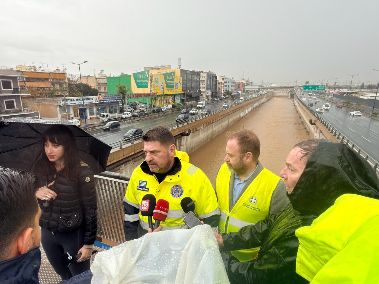 Αυτοψία του Περιφερειάρχη Αττικής στον Κηφισό για την κακοκαιρία «Byron» που έθεσε την Αττική σε κόκκινο συναγερμό
