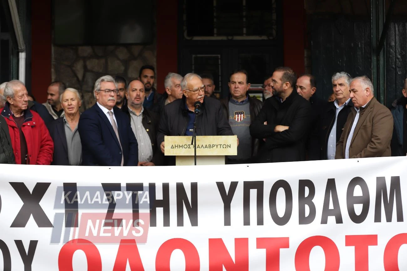 Η παρουσία του Περιφερειάρχη Δυτικής Ελλάδας Νεκτάριου Φαρμάκη, του Δημάρχου Καλαβρύτων Θανάση Παπαδόπουλου, του Δημάρχου Αιγιαλείας Παναγιώτη Ανδριόπουλου, εκπροσώπων του Επιμελητηρίου και πολυάριθμων συλλόγων προσέδωσε στην κινητοποίηση βαρύτητα και ενιαίο μέτωπο. Τα Καλάβρυτα, σε μια σπάνια για τα δεδομένα της πόλης εικόνα, «πλημμύρισαν» από πολίτες που κατέκλυσαν την κεντρική πλατεία και τους γύρω δρόμους, απαιτώντας τον σεβασμό και την πλήρη εφαρμογή της σύμβασης που προβλέπει τακτικά δρομολόγια του Οδοντωτού.