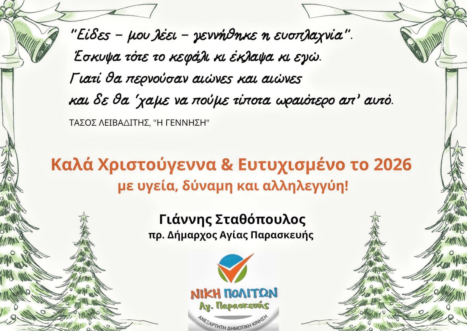 Όπως κάθε χρονιά έτσι και φέτος η Τοπική Αυτοδιοίκηση σας στέλνει τις ευχές της για τα Χριστούγεννα, την Πρωτοχρονιά και τα Θεοφάνεια, μέσα από το otavoice.gr, το πρώτο ειδησεογραφικό μέσο ενημέρωσης για τους ΟΤΑ στην χώρα.