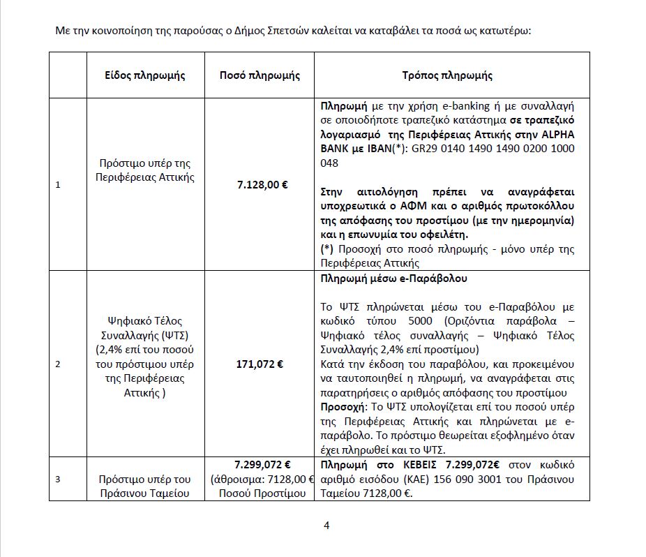 Οι αρμόδιες υπηρεσίες ουσιαστικά επιβάλλουν πρόστιμο στον δήμο Σπετσών καθώς διαπίστωσαν τη σοβαρότητα της παράβασης όπως αυτή βεβαιώθηκε μετά από αυτοψία στο χώρο.