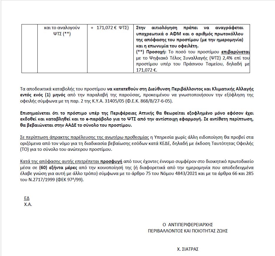 Την απόφαση υπογράφει ο αρμόδιος Αντιπεριφερειάρχης Περιβάλλοντος και Ποιότητας Ζωής Χαράλαμπος Σιάτρας.
