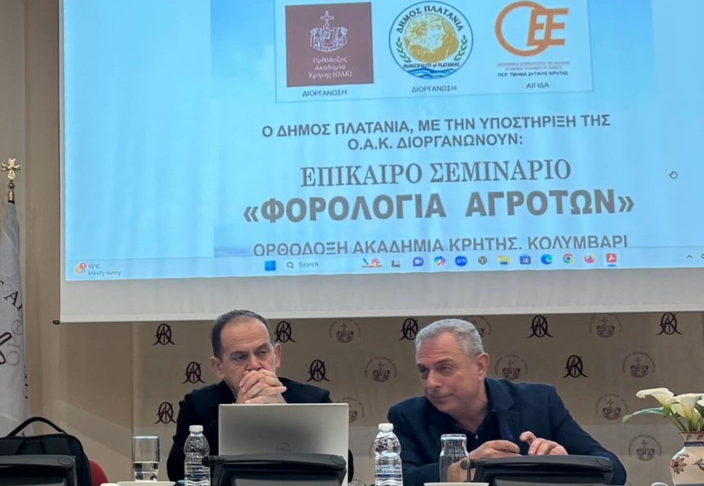 Οι προτάσεις προέκυψαν στο πλαίσιο του επίκαιρου σεμιναρίου με θέμα «Φορολογία Αγροτών», το οποίο πραγματοποιήθηκε στις εγκαταστάσεις της Ορθόδοξης Ακαδημίας Κρήτης στο Κολυμβάρι Χανίων, με εξαιρετικά μεγάλη συμμετοχή και έντονο ενδιαφέρον.