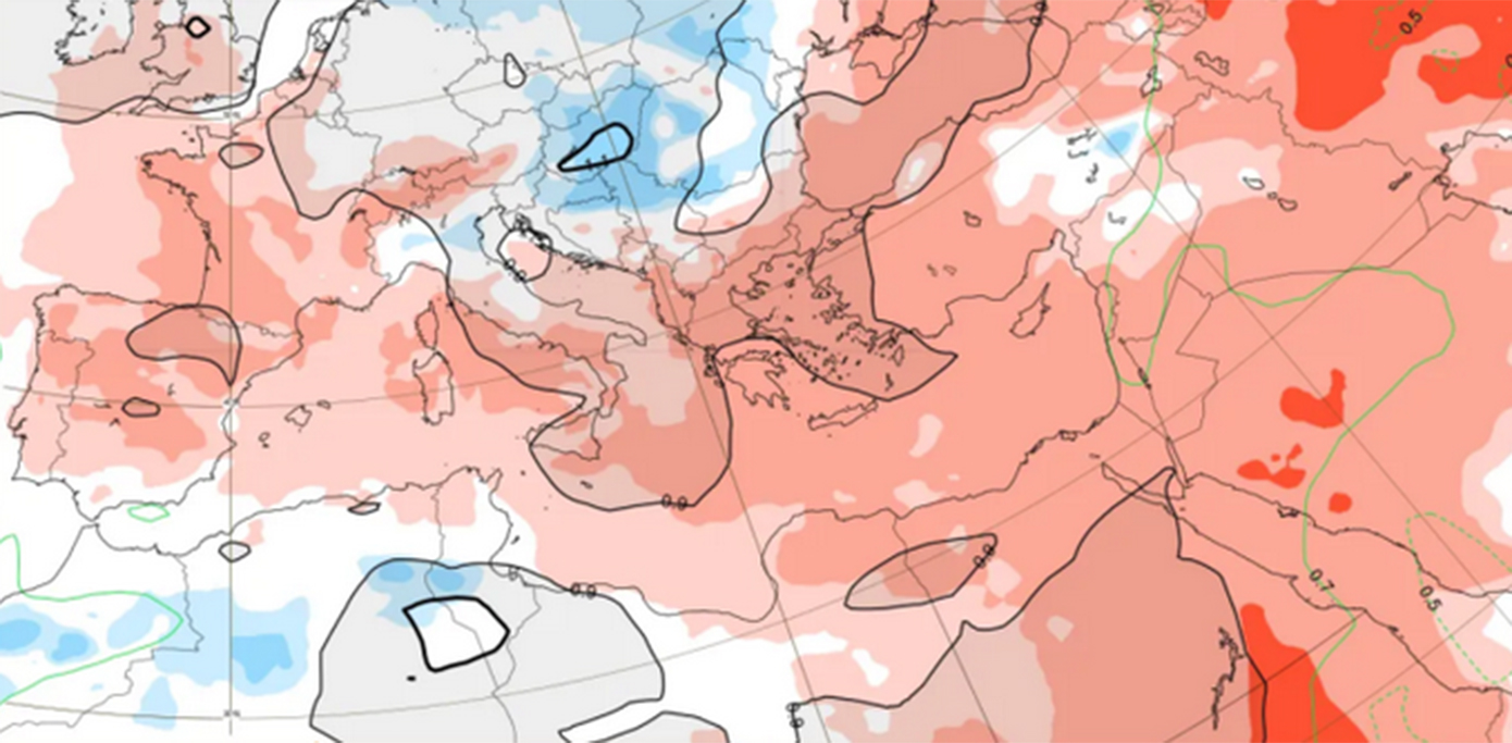 Κατά την εβδομάδα από 5 έως 12 Ιανουαρίου, η Ελλάδα τοποθετείται ξεκάθαρα στη ζώνη των θετικών θερμοκρασιακών αποκλίσεων. Οι θερμοκρασίες αναμένεται να κινούνται πάνω από τις κλιματικές τιμές της εποχής, κυρίως στα ανατολικά τμήματα της χώρας, καθώς και στο Αιγαίο και την Κρήτη. Η επικράτηση νοτιοδυτικών ροών στην Ανατολική Μεσόγειο ευνοεί τη μεταφορά ηπιότερων αερίων μαζών, χωρίς ενδείξεις οργανωμένης ψυχρής εισβολής.