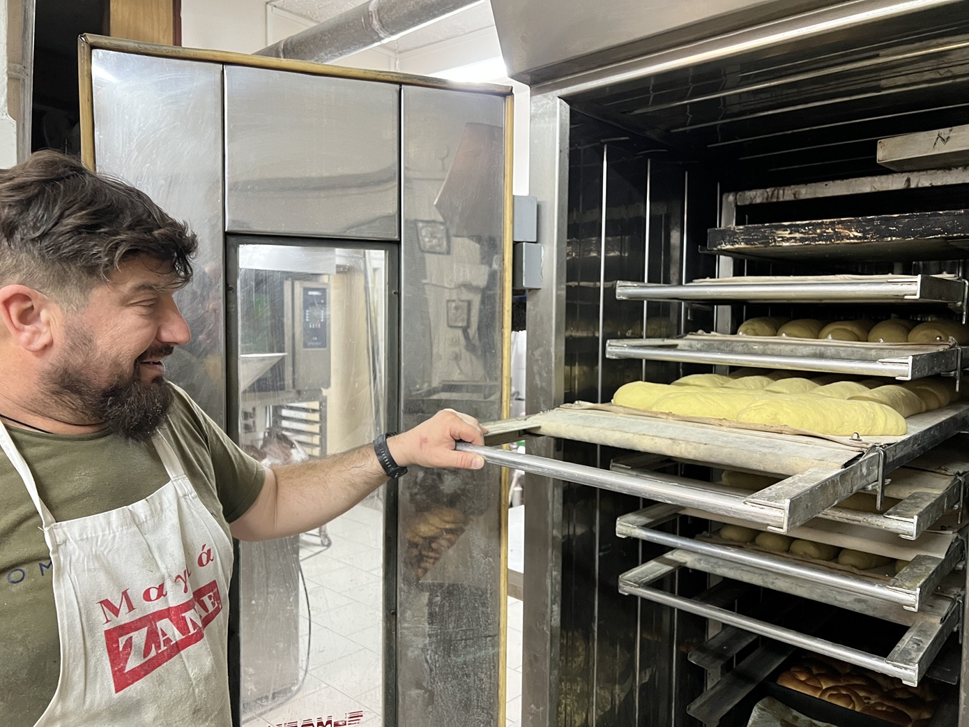 O φούρνος «άνοιξε» στις 7 το απόγευμα της Κυριακής. Ξεκινήσαμε την προετοιμασία δυο άτομα, στην συνέχεια ήρθαν άλλα δυο στις 8 το βράδυ και μέχρι τις 10 το βράδυ της Κυριακής, είχε έρθει όλη η ομάδα.