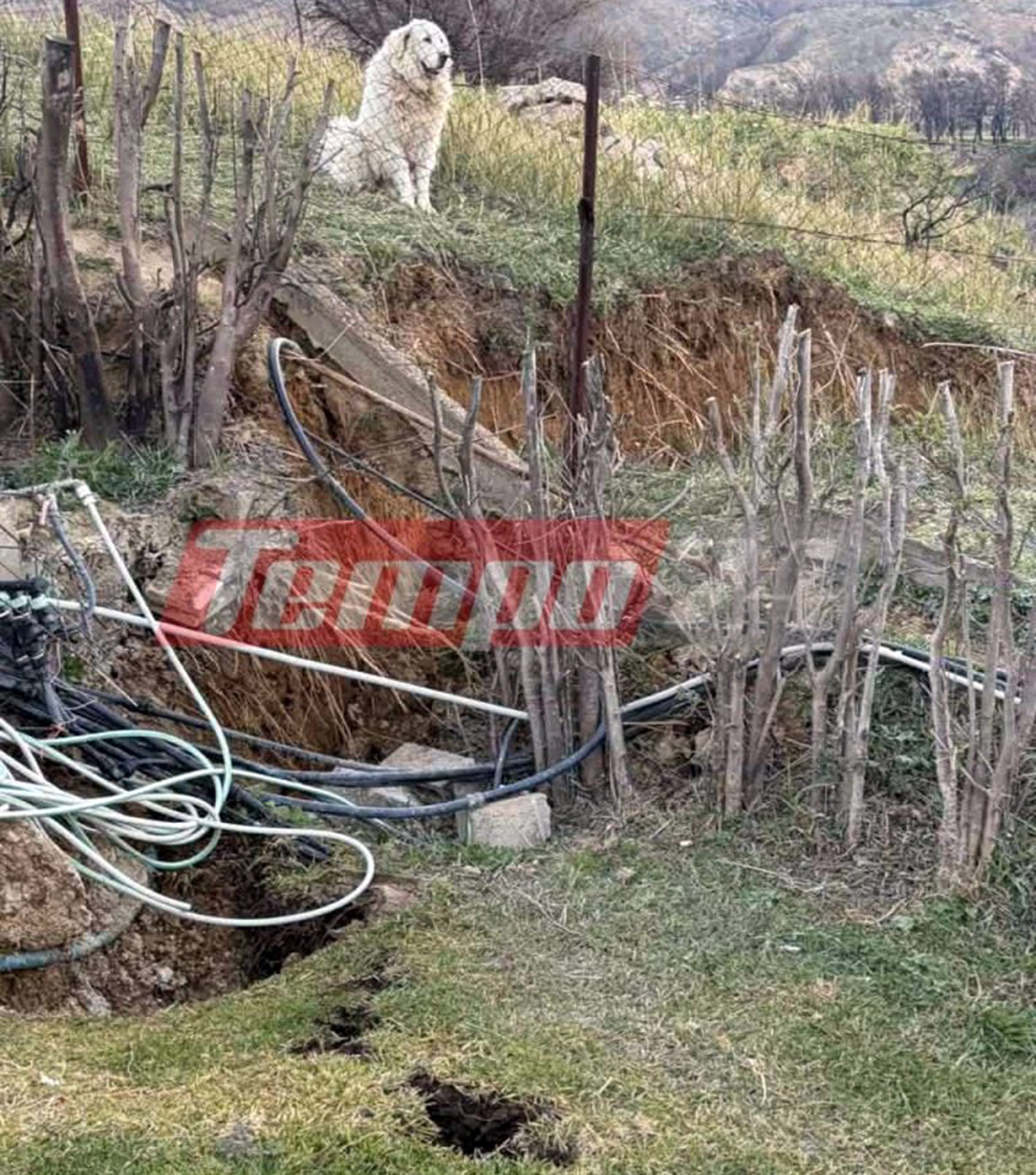 Πολύ κοντά στο ένα σπίτι το έδαφος έχει «σκιστεί» ενώ ακριβώς στη μία πλευρά του κτιρίου, το βουνό ολισθαίνει. Το φαινόμενο ξεκίνησε έντονα την περασμένη Παρασκευή, χθες όμως το πρόβλημα μεγάλωσε. Η οικογένεια επικοινώνησε με την Πολιτική Προστασία του δήμου και δόθηκε εντολή για εκκένωση του σπιτιού και εγκατάλειψη του σημείου. Η οικογένεια παραμένει μέσα, ωστόσο ο φόβος για επέκταση της καταστροφής είναι ορατός.