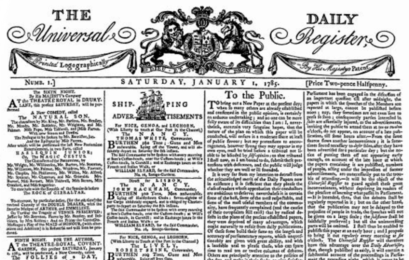 1788: Κυκλοφορεί το πρώτο φύλλο των Times του Λονδίνου.