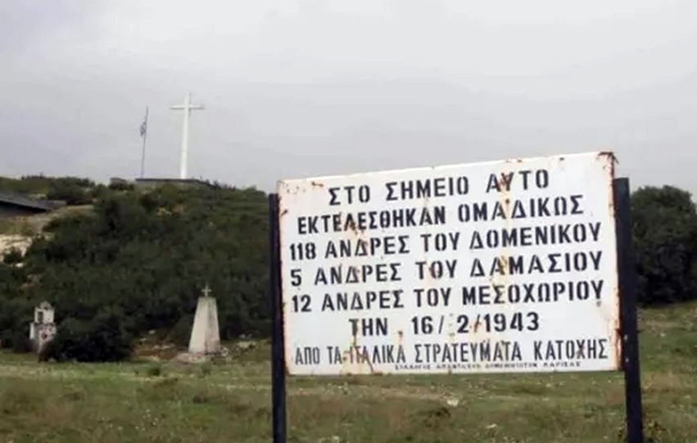 1943: Στο Δομένικο της Λάρισας, ιταλικές δυνάμεις κατοχής της Μεραρχίας Πινερόλο εξαπολύουν αιματηρά αντίποινα μετά από ενέδρα ανταρτών του ΕΛΑΣ στην περιοχή, εκτελούν μαζικά άμαχους κατοίκους και πυρπολούν οικισμούς, με τον αριθμό των νεκρών να καταγράφεται συνήθως γύρω στους 150 (και σε ορισμένες καταμετρήσεις υψηλότερα, μαζί με θύματα από γειτονικά χωριά), σε ένα από τα βαρύτερα ιταλικά εγκλήματα πολέμου στην κατεχόμενη Ελλάδα.