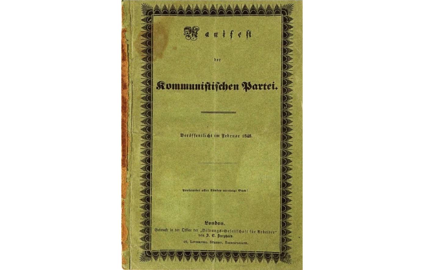 1848: Στο Λονδίνο οι Καρλ Μαρξ και Φρίντριχ Ένγκελς δημοσιεύουν το «Κομμουνιστικό Μανιφέστο», κείμενο–σταθμό για την ιστορία του σοσιαλισμού και του κομμουνιστικού κινήματος. Το μανιφέστο, γραμμένο για τη Μπουντεσφέροφεντερατιον των Κομμουνιστών, διατυπώνει τη θεωρία της πάλης των τάξεων και καλεί στην ανατροπή του καπιταλισμού, επηρεάζοντας βαθιά τα επαναστατικά κινήματα και τις πολιτικές θεωρίες των επόμενων αιώνων.